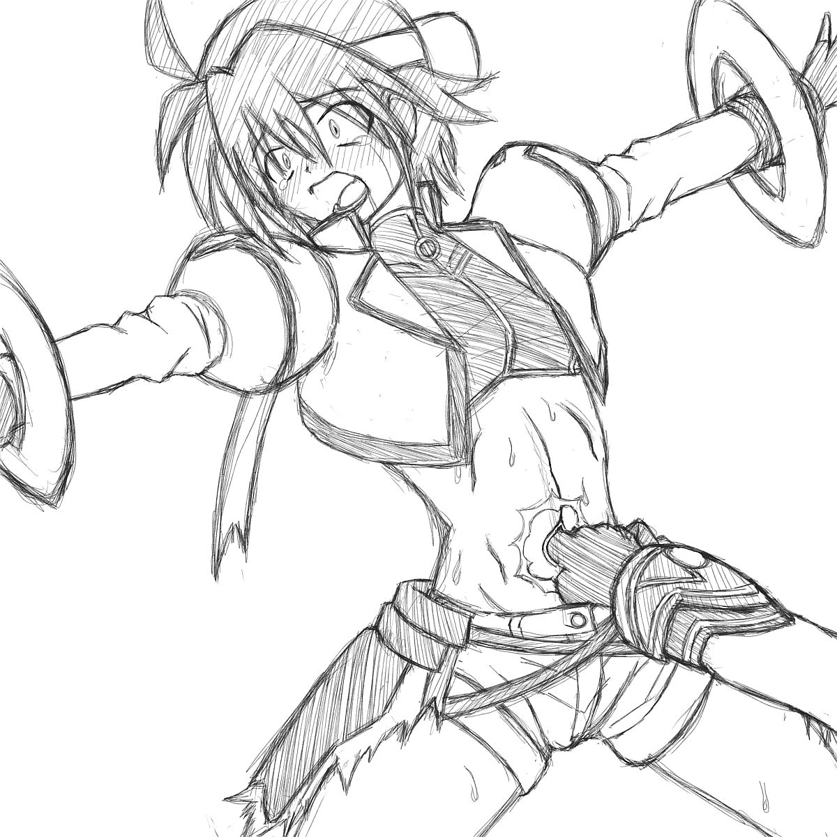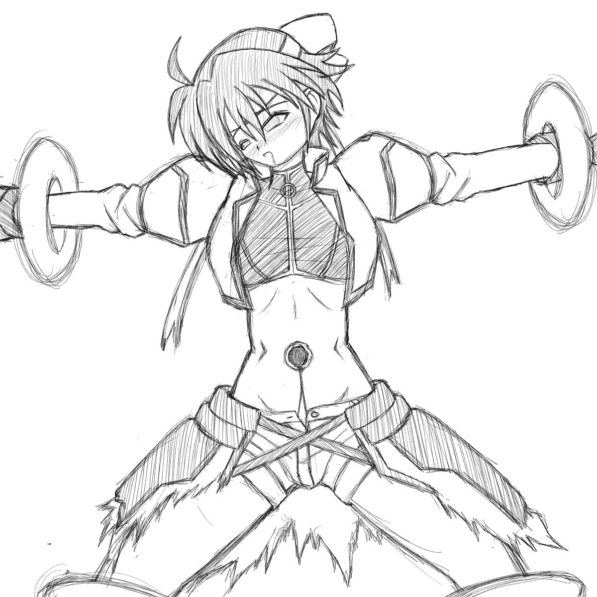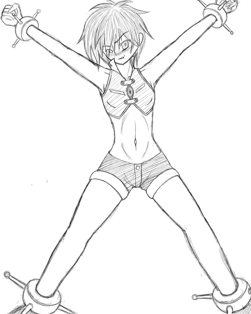 前々から描きたいと思っていたあのへそ出し娘のへそ責め絵をようやく描いてみた。