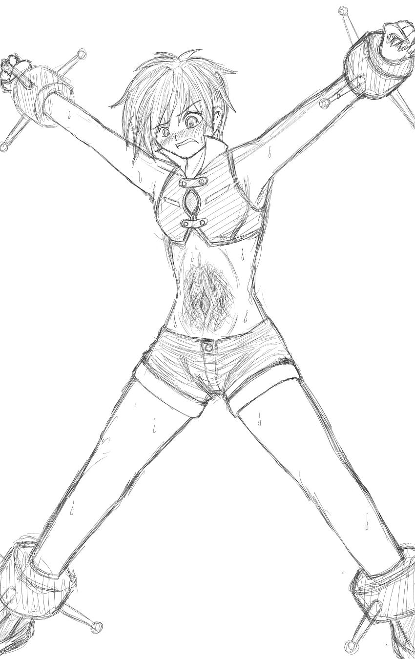 両手両足をバインドで拘束されて、むき出しのおへそにキツいお仕置きを受けるスバルちゃん。