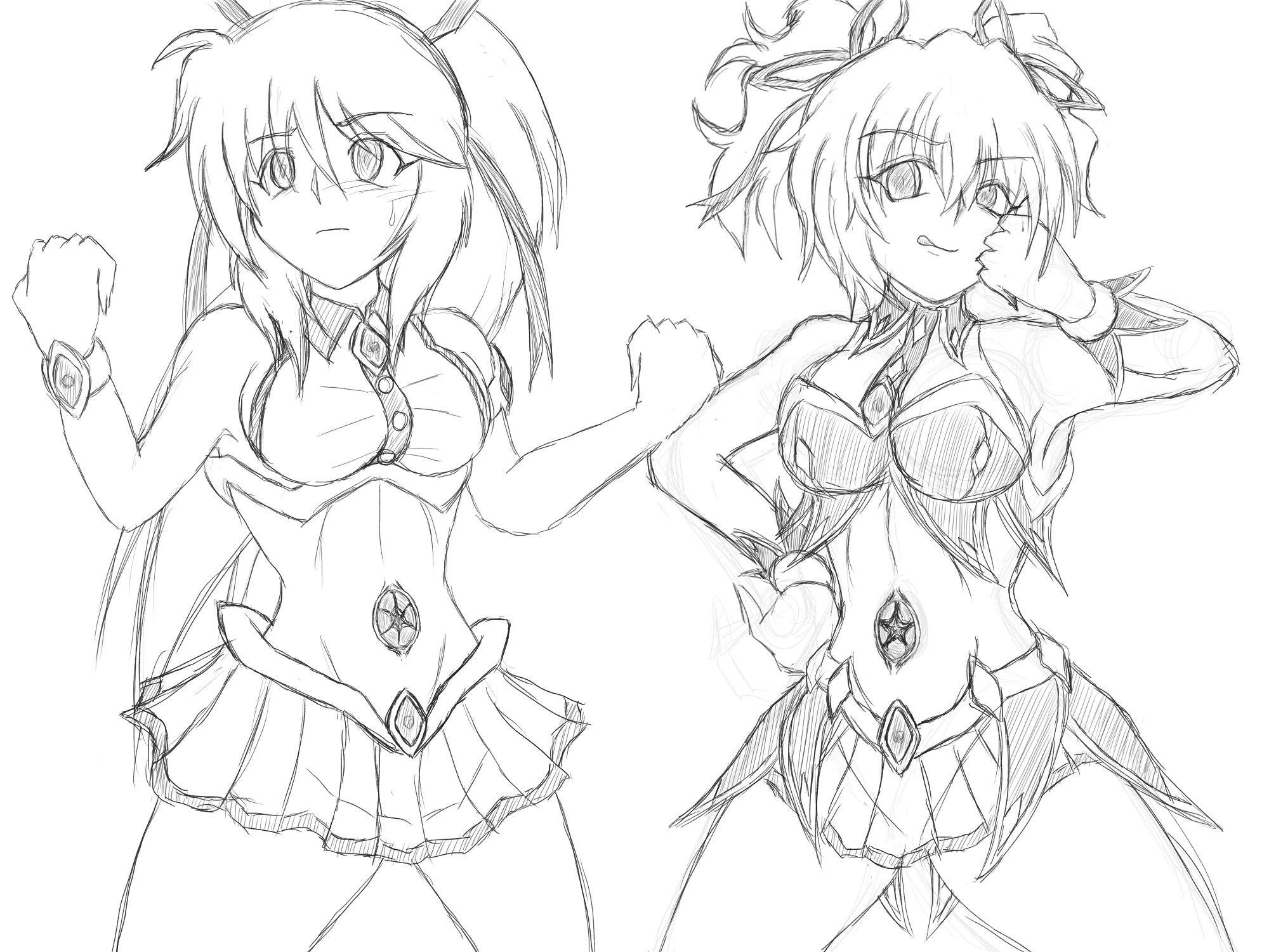 並び立つ白と黒の衣装…2人のおヘソ戦士。